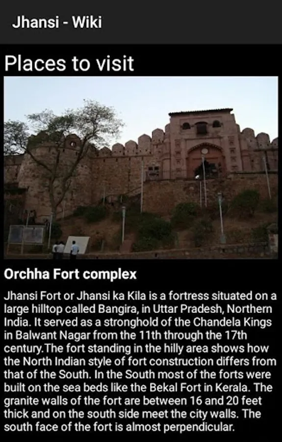 * Jhansi - Wiki shows offline information about the famous places to visit.
