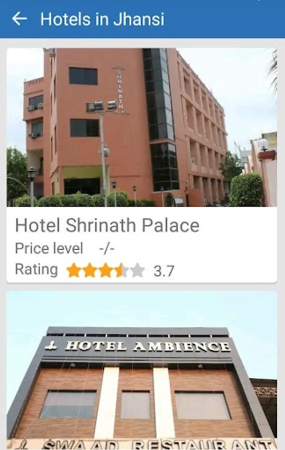 * Jhansi - Wiki shows famous Hotels, Restaurants, Health Centers and attractions based on the Google Map Ratings.