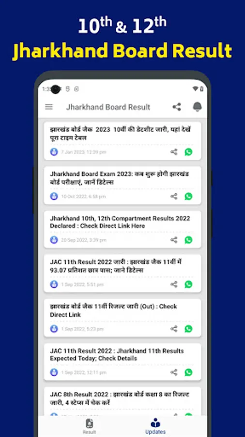 Do you want to know your JAC Board Result for Class 10th & 12th 2023 immediately? If yes then you have reached the best place. We are excited to help you to find out your Jharkhand Class 10-12th result. Use this app to get an instant result and notification when the JAC Board Class 10th & 12th result will be announced by the Jharkhand Academic Council. The best and unique feature of this app is that you can register yourself on this app and you will receive the result as soon as it is released by the JAC Board. We have created this app only for the Jharkhand Board students. Therefore, Downloading the JAC 10th result 2023 Result and JAC 12th result 2023 result becomes very easy by using this app. You can easily check your JAC result and instantly can be shared with your friends & families.