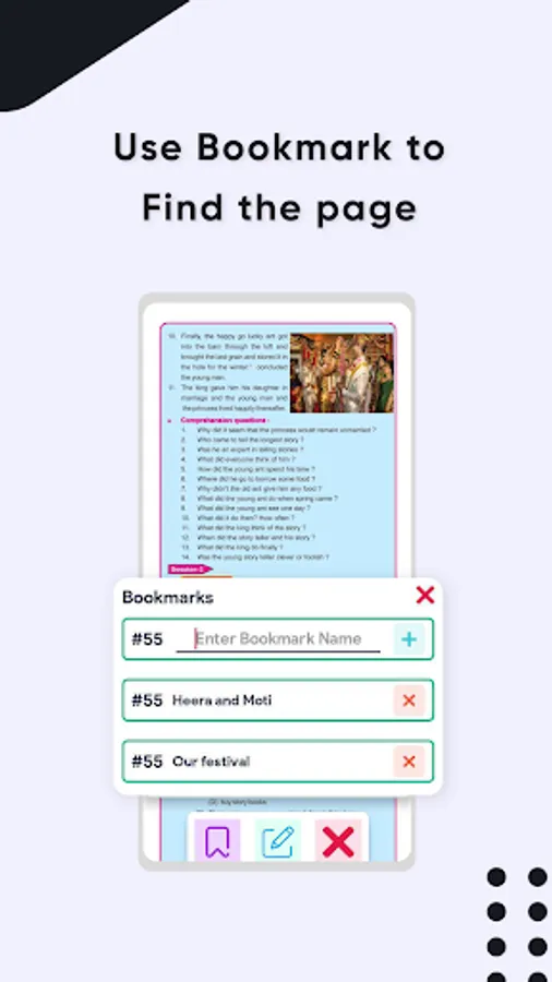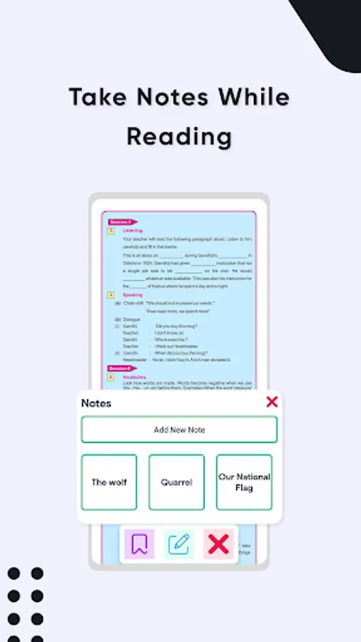 You can note down the essential points as simple notes in this app while studying, which is a great advantage for you. By using the bookmarks feature you can easily find the areas and pages where you left off.
