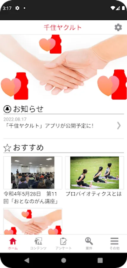 With the aim of creating a healthy, comfortable and prosperous society, we will spread correct knowledge about cancer and support many people to live healthy and happy lives, starting with recommending cancer screenings. increase!