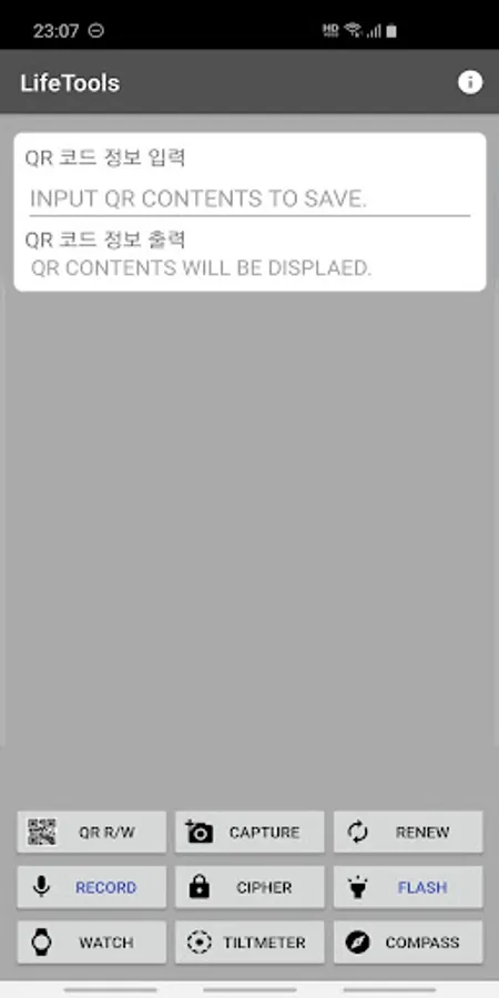 LifeTools is a tool app that provides you with real-world features (reading / writing QR codes, taking photos, recording voices, encrypting / decoding strings, flashlights, alarms, stopwatches, timers, level indicators, and compasses).