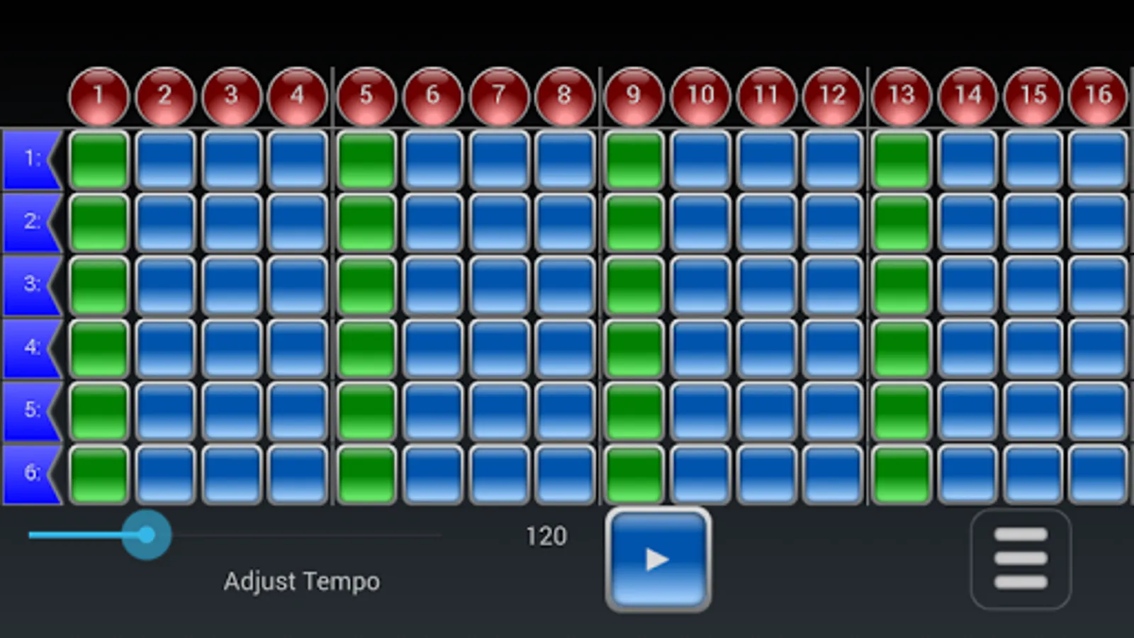 It’s really easy to use. Select the sounds you want to play, and at what point, adjust the tempo and press play!