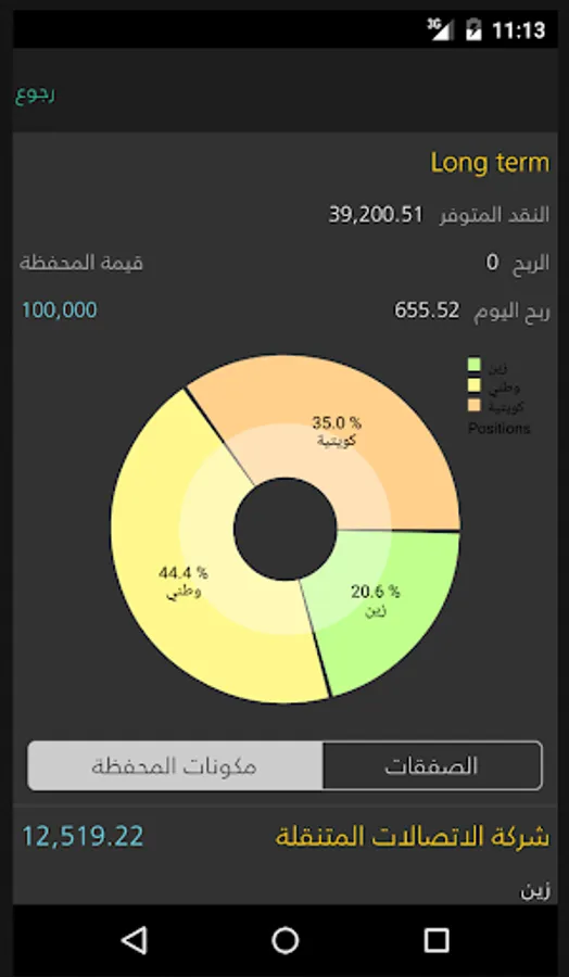 قائمة صفقات المحفظة