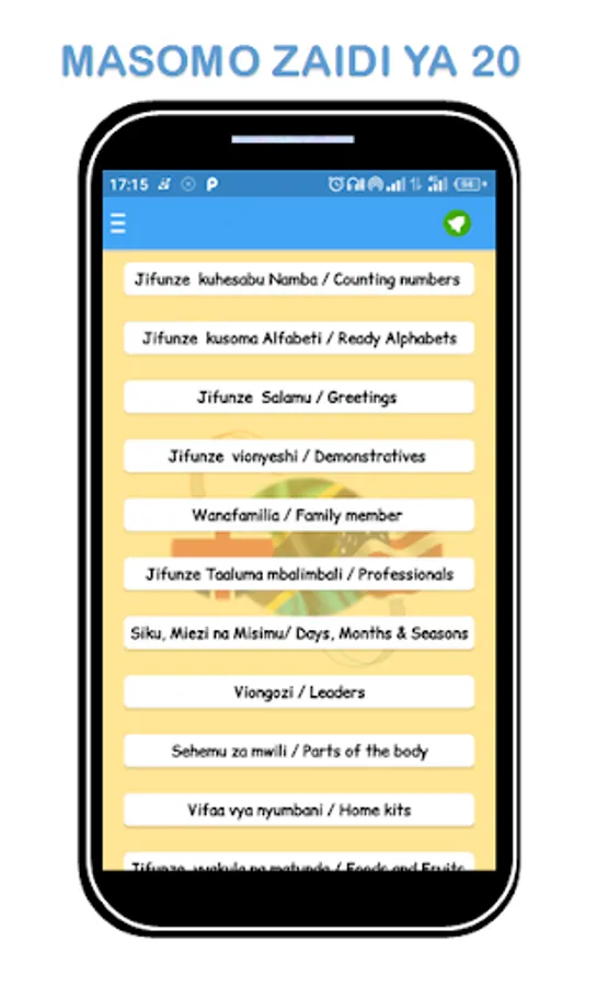 > Ina masomo zaidi ya 20+ ya kujifunza kiingereza.