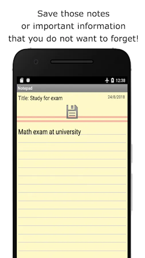 This application allows you to save your notes, notes and other important data to save and remember.