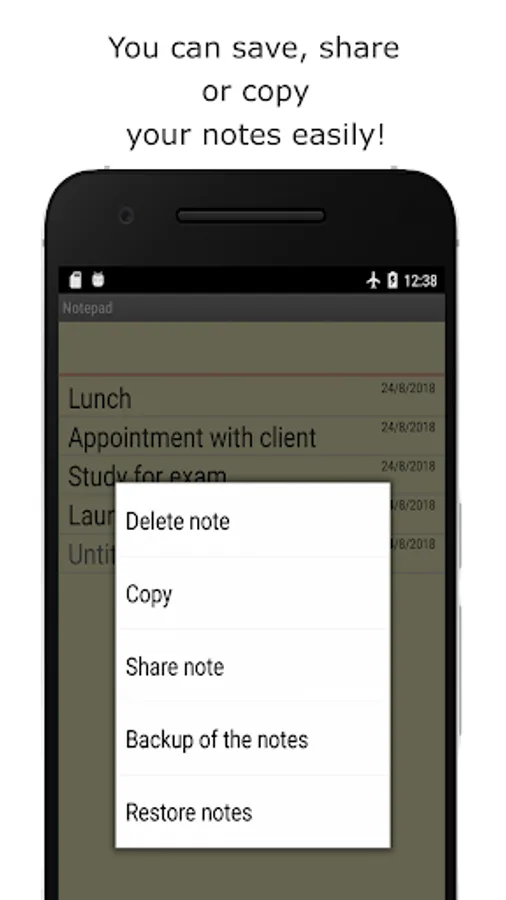 * You must press a note for 2 seconds to get the options menu to copy the note, delete or share.