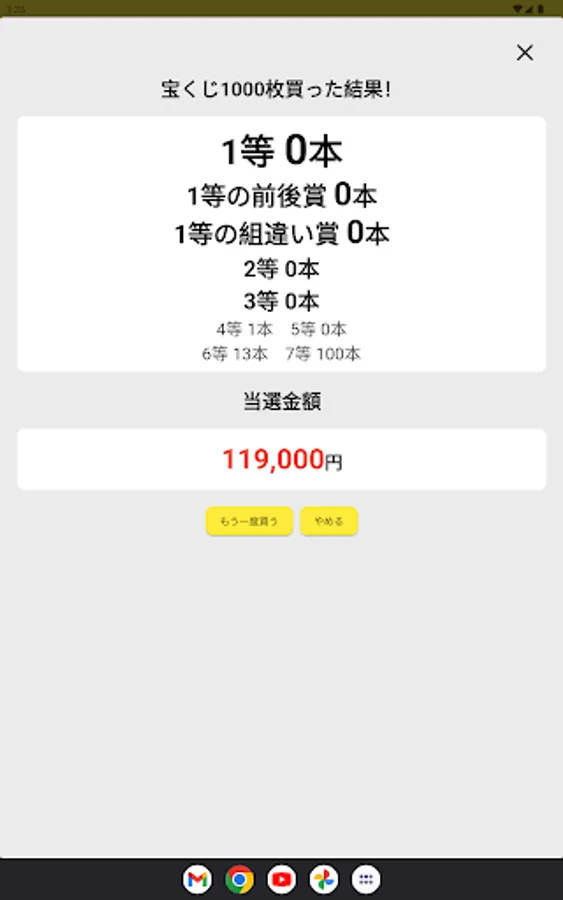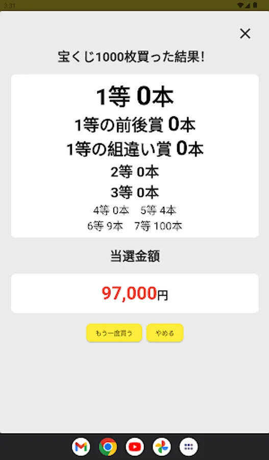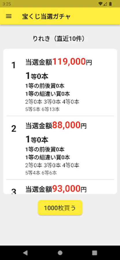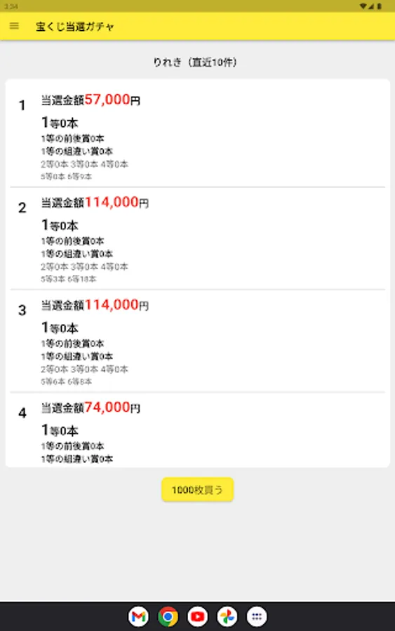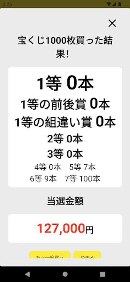 ・Reproduce the actual lottery results and provide a realistic lottery experience. Winning probabilities and probability distributions are based on actual lottery data.