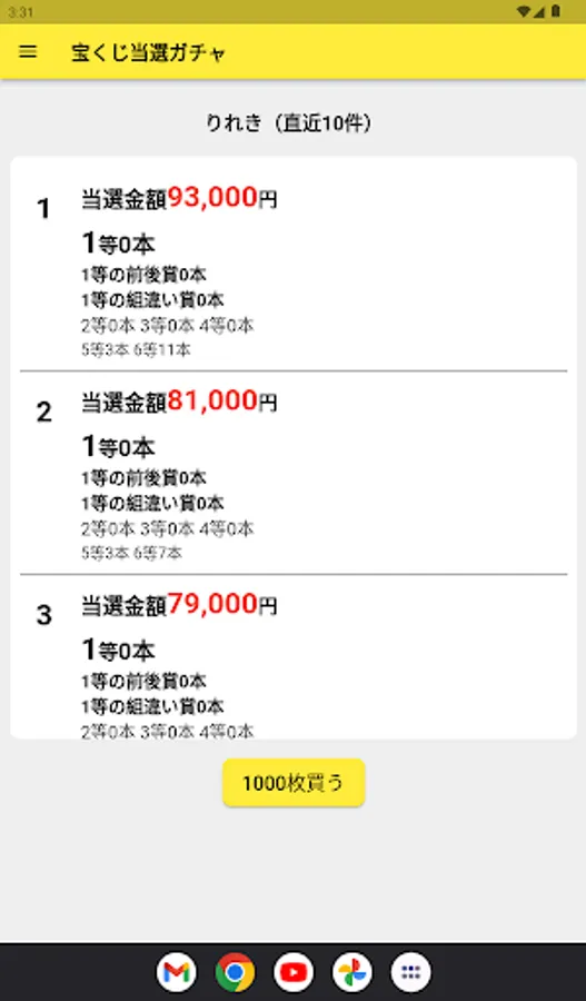 This app is an application that provides an experience to get your dream jackpot. You can try the lottery infinitely. Experience the excitement of hitting the jackpot!