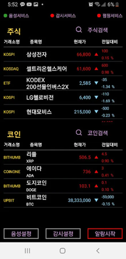 Samsung Electronics stock price, bitcoin price, etc. For stocks (KOSPI, KOSDAQ, ETF) and coins (Bithumb, Upbit, Coinone) for the price (coin GIMP, etc.) You can catch the quote. (Recommended to use earphones)