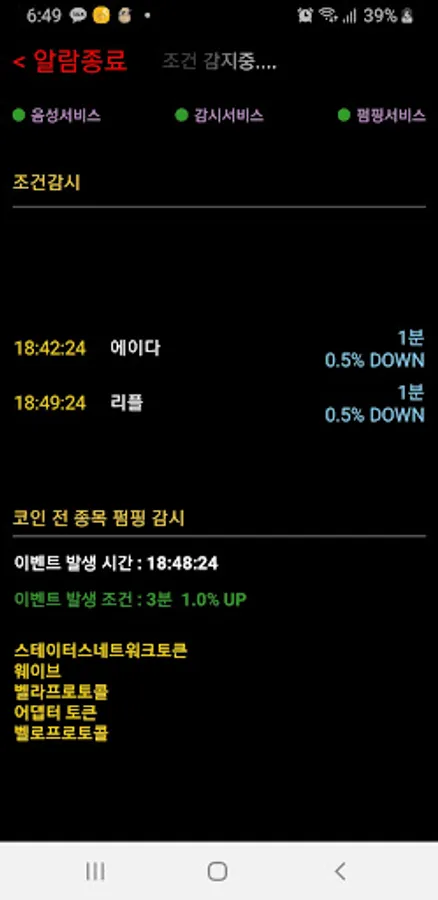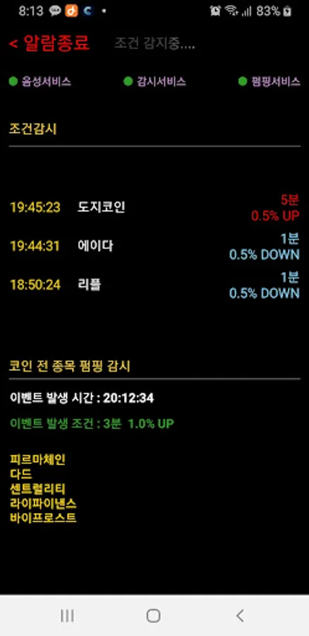 - For all items registered on Bithumb, the % is detected and notified based on the time unit.