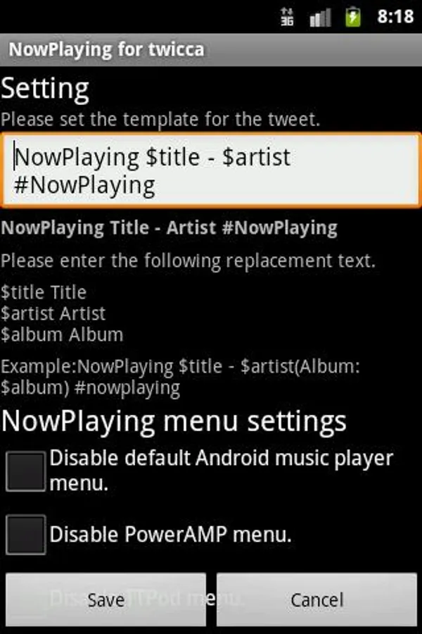 This plugin supports Android default music player(without mediascape,etc...manufacturer original application) ,PlayerPro,TTPod and PowerAMP.