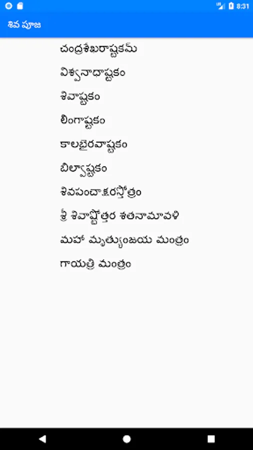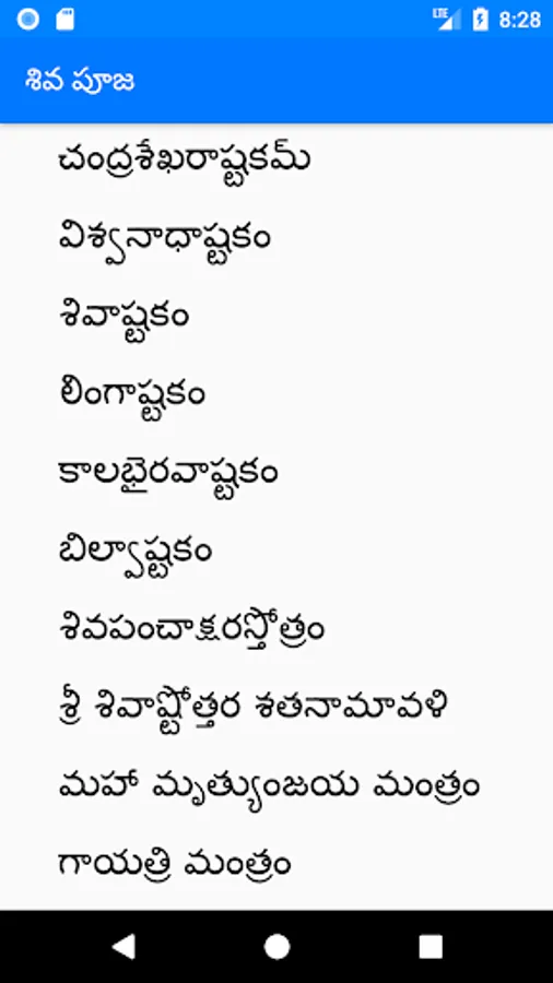 This application contains musical mantras with lyrics in Telugu for Lord Siva puja. With this application, it is easy to learn the pronunciation of mantras as one can read the lyrics while listening to mantras. Below are the contents: