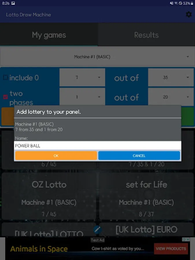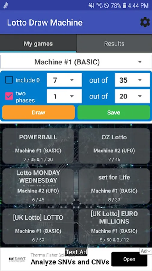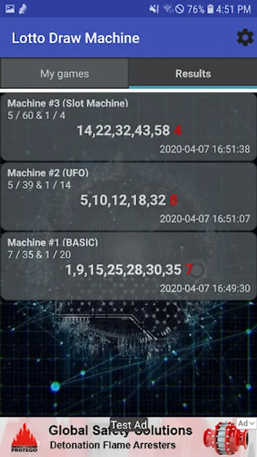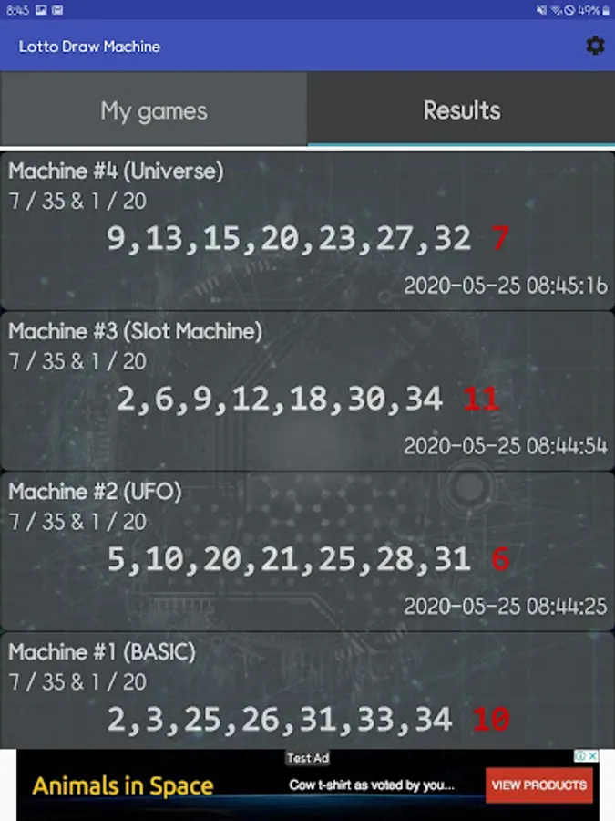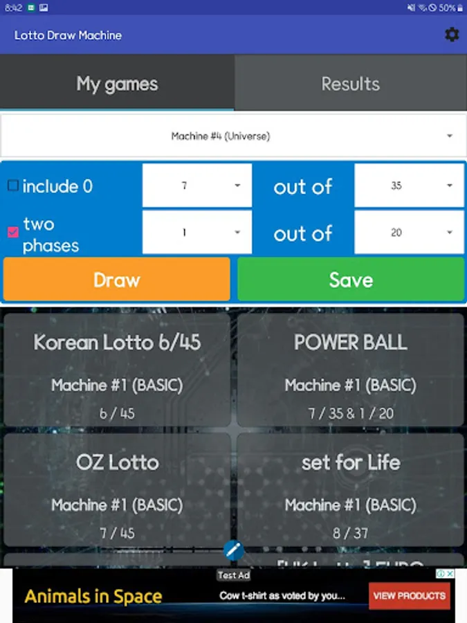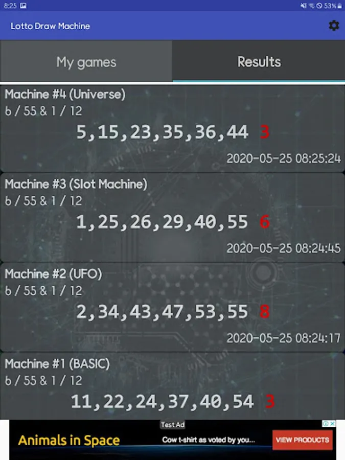 There are four types of lottery machines.(General, UFO, UNIVERSE)