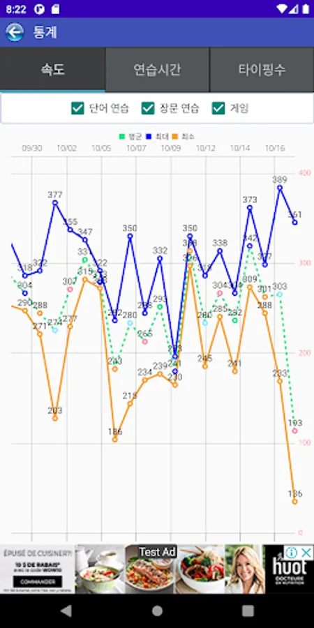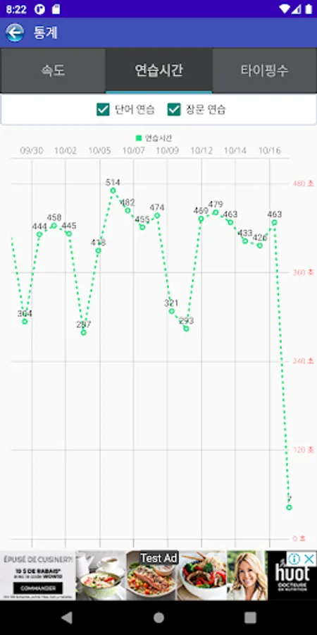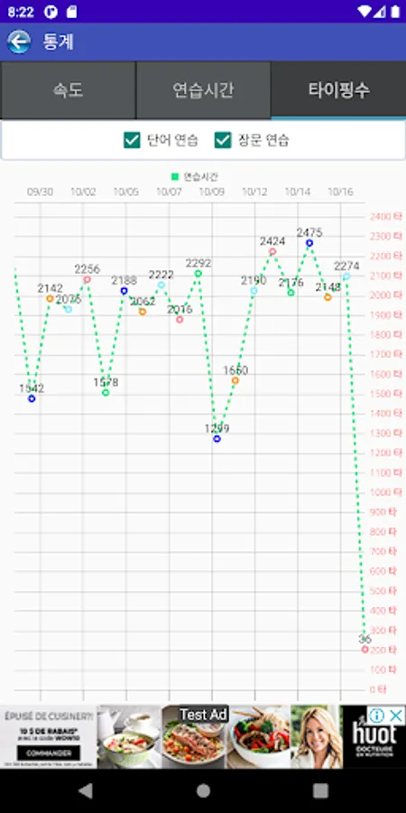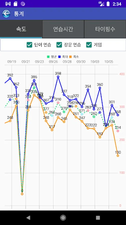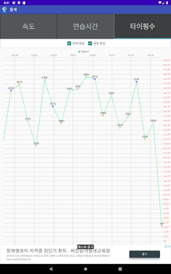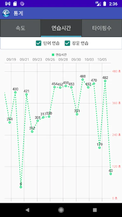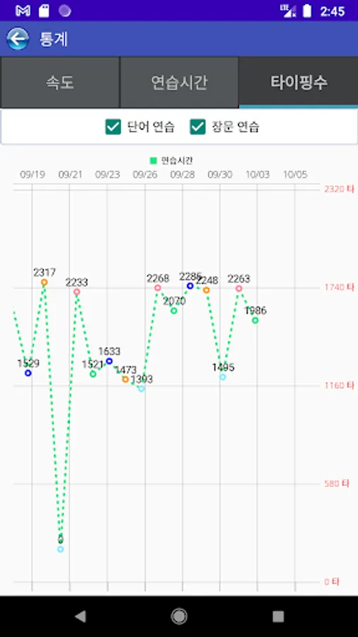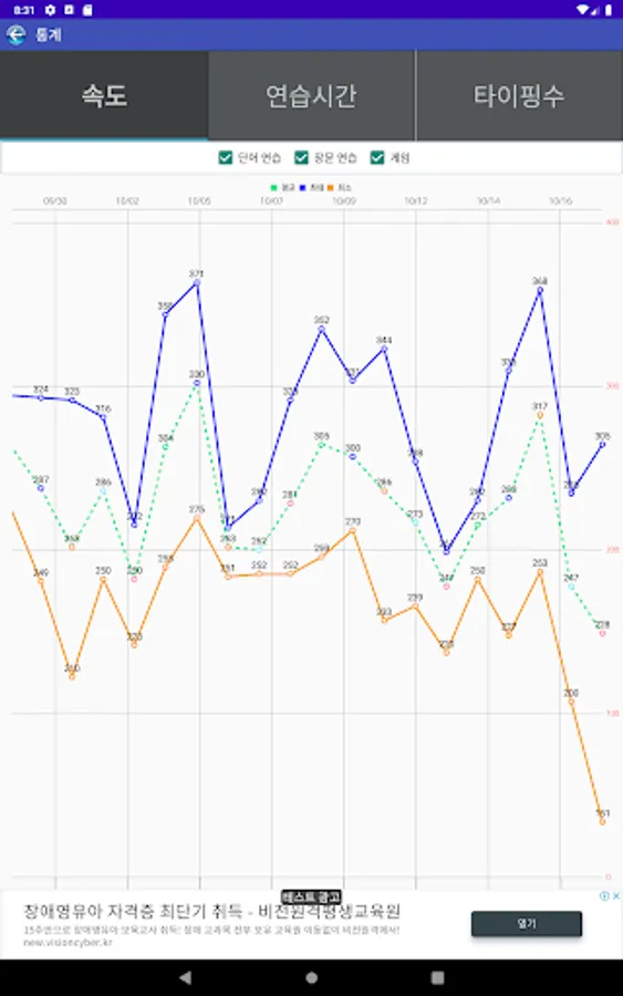 4. Statistics (shows speed/practice time/practice typing count by day)