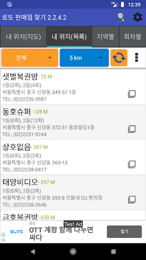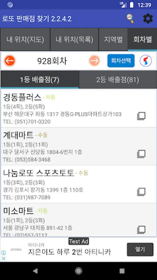 -Location: Used to search nearby lottery stores