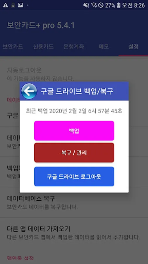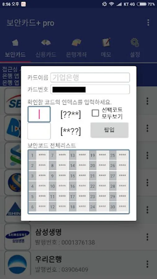 It is necessary to check whether the bank app is running. When the set app is executed, the security card pop-up window is executed.