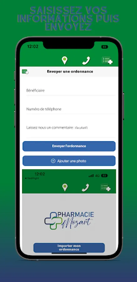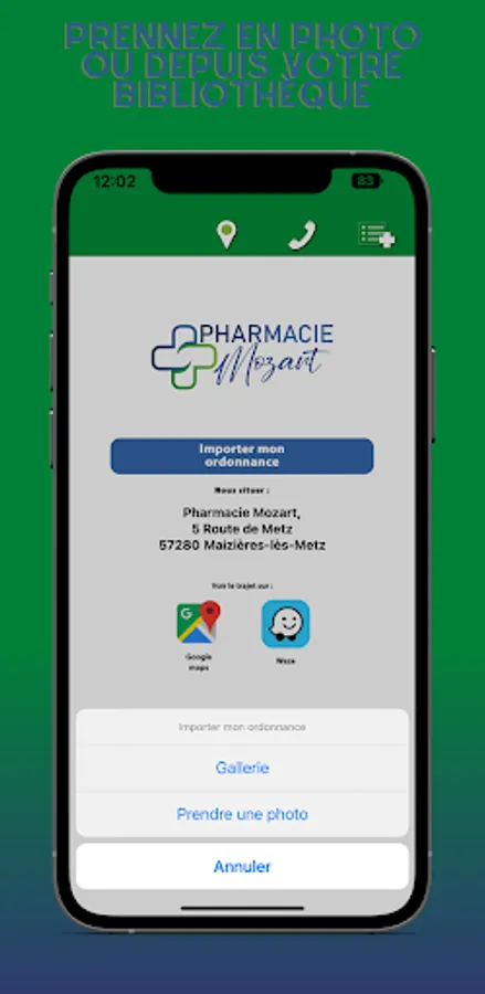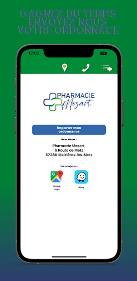 Thanks to your Mozart Pharmacy application, send us your prescription in advance so that it is ready when you arrive with us.