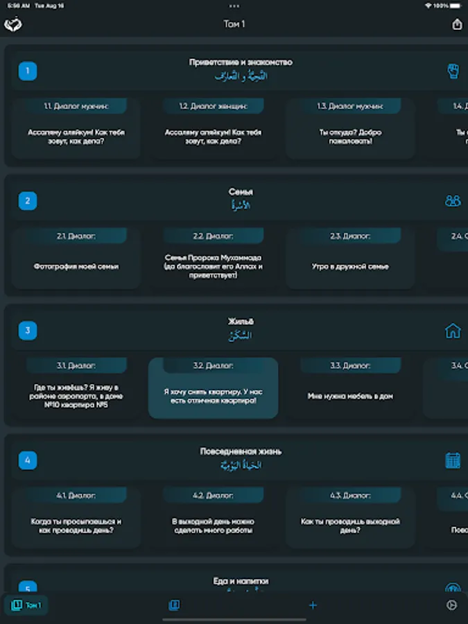 Bu sizga arab tilida suhbat va gaplashishning boshlang'ich ko'nikmalarini beradigan asosli, puxta va hajmli dasturdir.