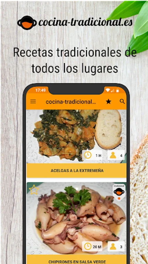 Download Traditional cuisine and enjoy the recipes of a lifetime. Explained step by step, in a clear and simple way, it will help you make your homemade and healthy recipes, as well as inexpensive recipes that your pocket will appreciate. Tired of not knowing what to eat? With all our recipes, you will not be short of ideas for breakfasts, lunches, desserts, snacks or dinners ... Download and cook!