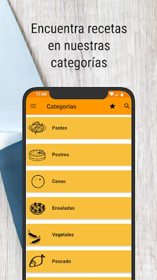 - Recipes divided into CATEGORIES to easily find the recipe you are looking for and get ideas according to what you want to cook: