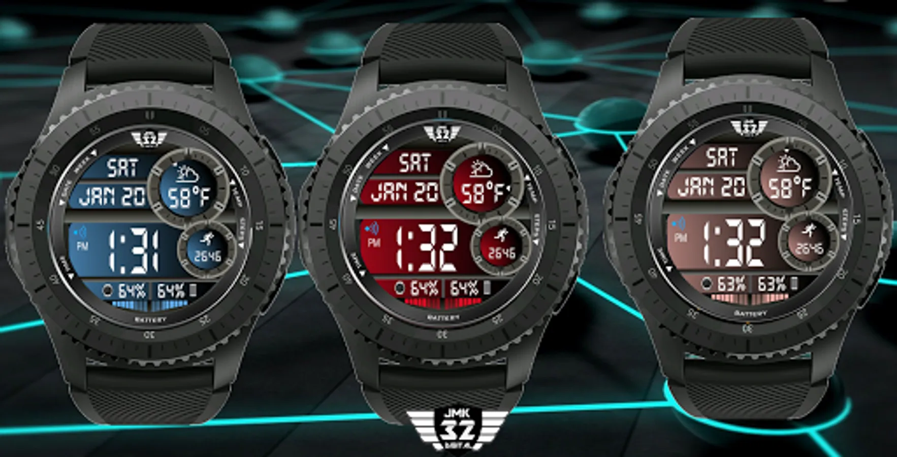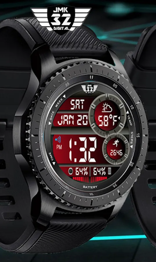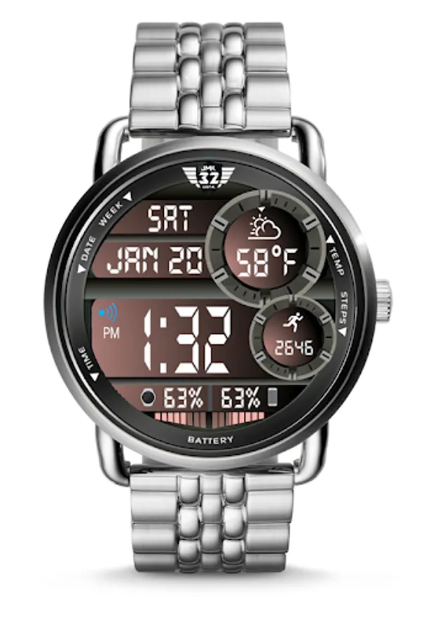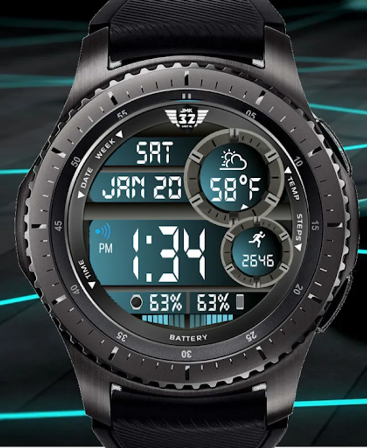 This NX32 watchface is an interactive, distinct, stylish, multi-informational watchface with all pertinent info at a glance: