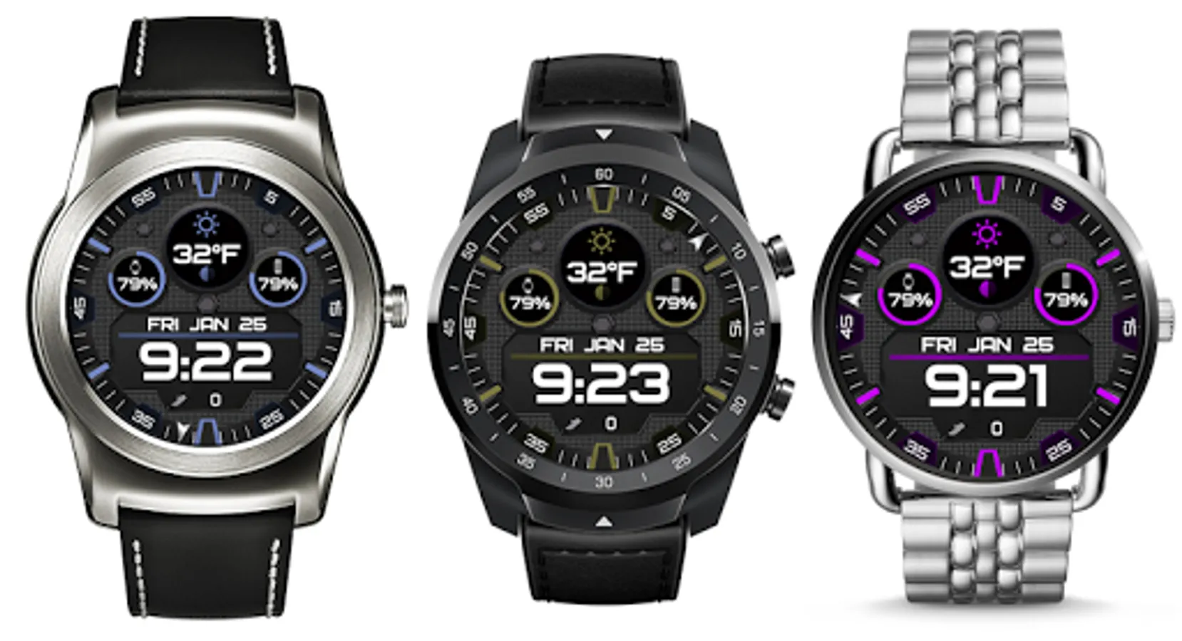 All in a very stylish and high quality watchface that looks very sharp, clear and fantastic on a wide variety of Android Wear OS and Samsung Tizen smartwatches.