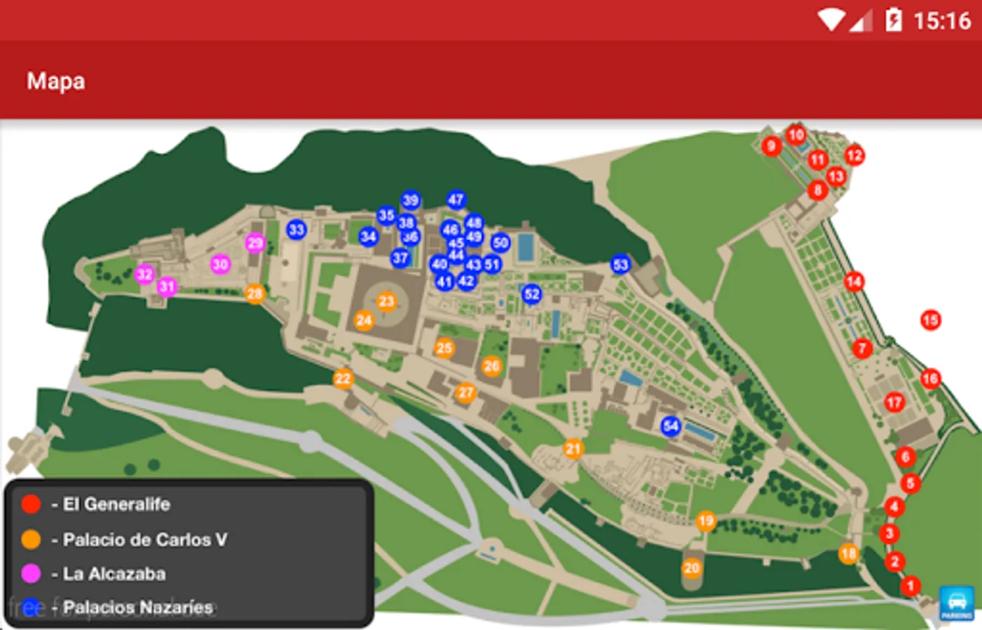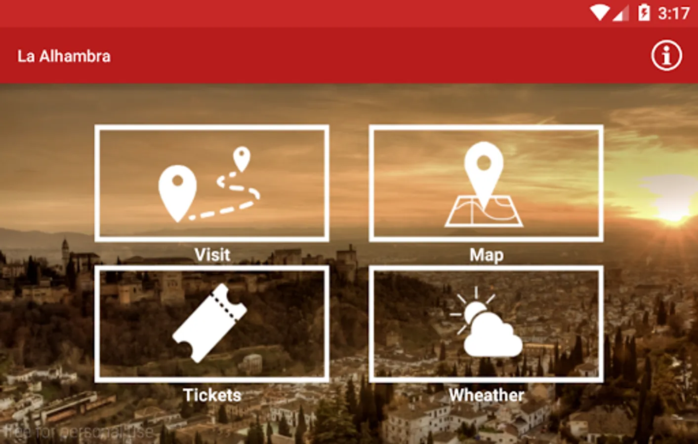 Now you can have all the information from the Alhambra on your device, Weather, Tickets, Information, Map, Audios...