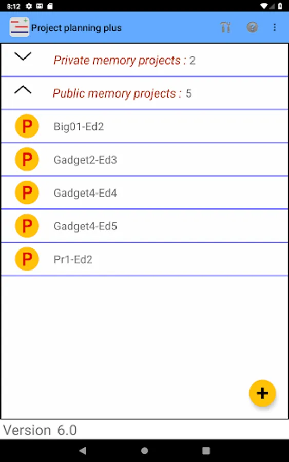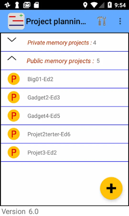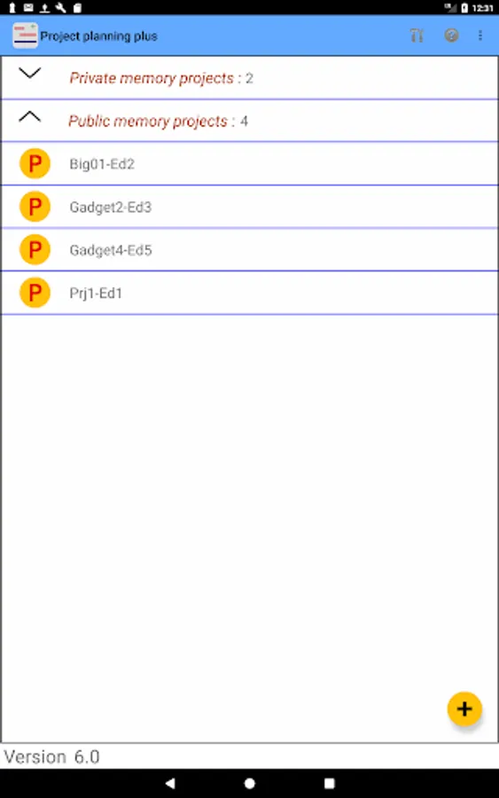 - the possibility of creating an unlimited number of projects, each project being saved in an XML file in the extended memory of the mobile,