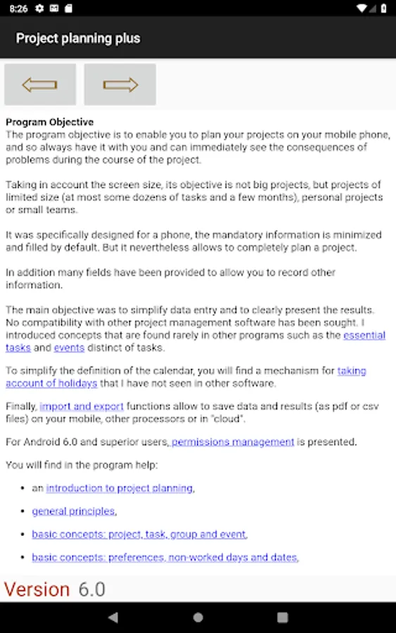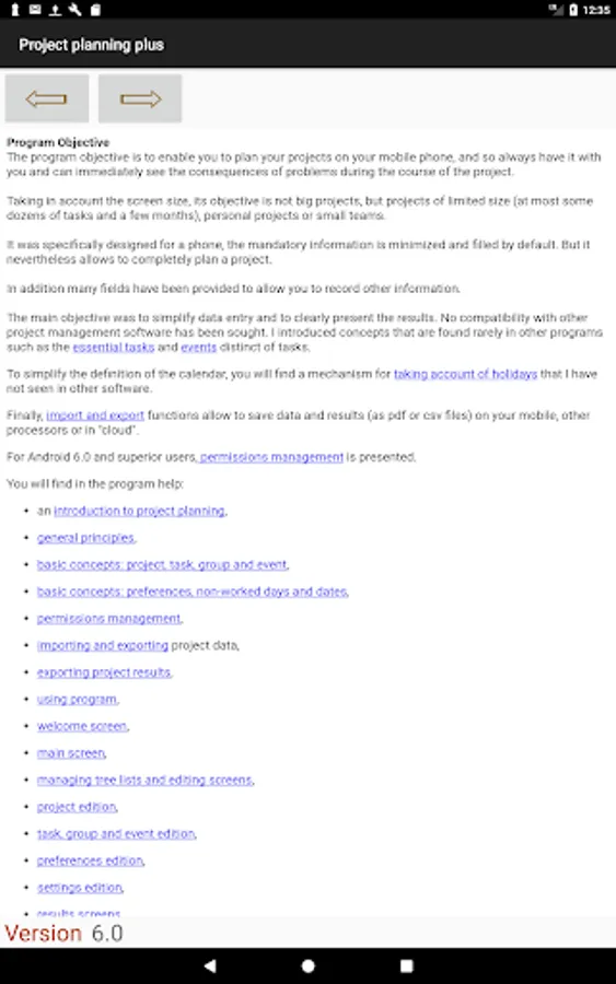 However you will be able to plan all kinds of projects. If you need more precision for your schedule (hours and minutes), examine the program "Short project planning".