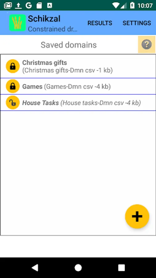 The data required for the draws, lists of items and lists of exclusions are grouped in a domain, and the program allows you to manage several independent domains.
