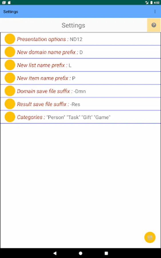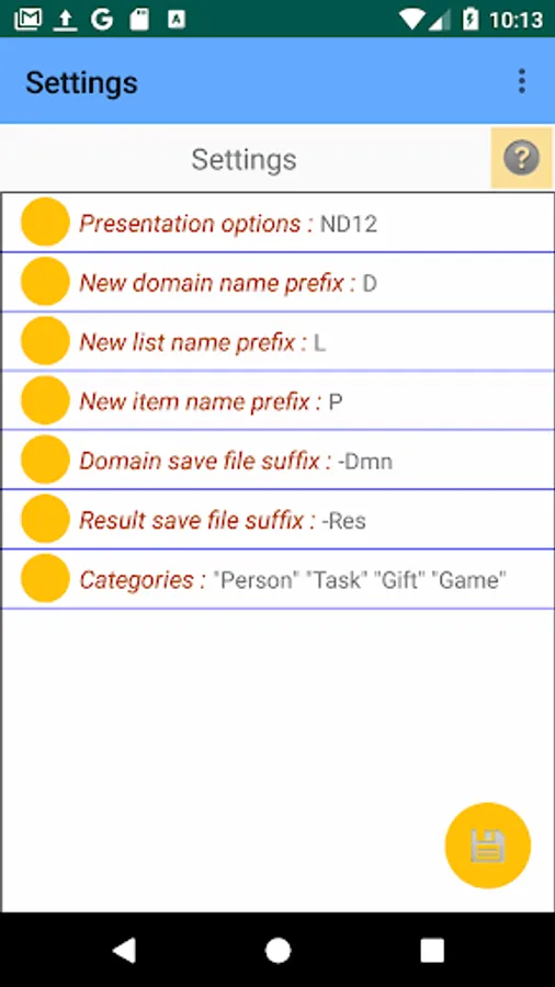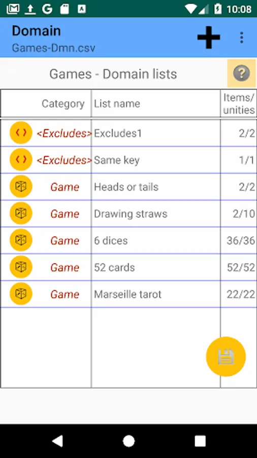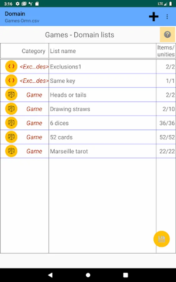 Entering data for a draw represents a certain amount of work, and the program contains many functions to facilitate the entry and saving of data: possibility of multi-unit items, copies of lists or items, saving of domains in files in the mobile's extended memory, data export and data recovery function, etc.