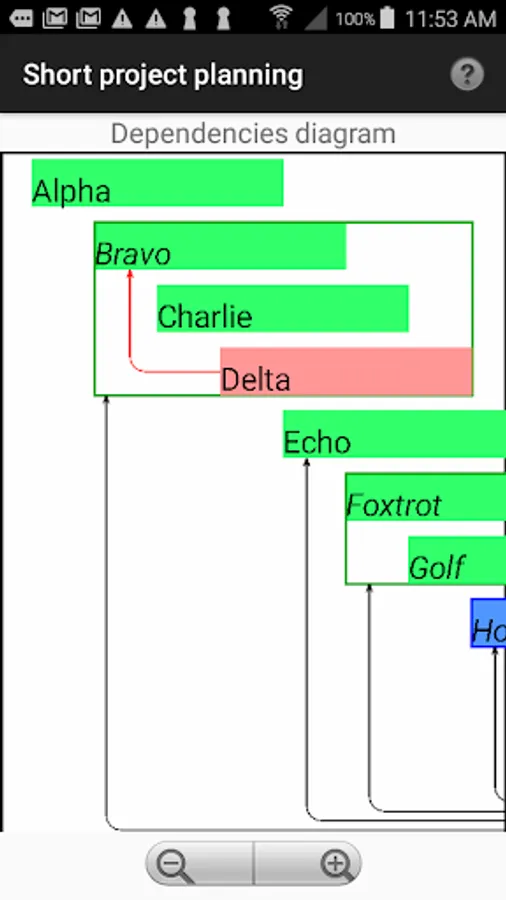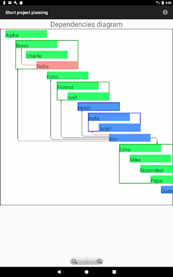 Short project planning plans your projects from the decomposition of works into tasks, the estimated duration of the tasks and the links between tasks. The results are presented in the form of tables (beginnings and ends of tasks, margins ...), a Gantt chart and a dependency diagram. You can view them on your mobile or send them as a PDF file, and view them remotely or print them.