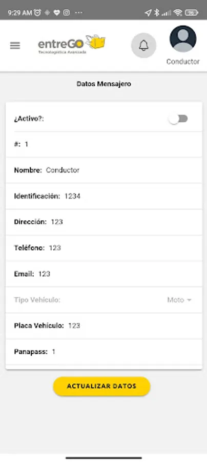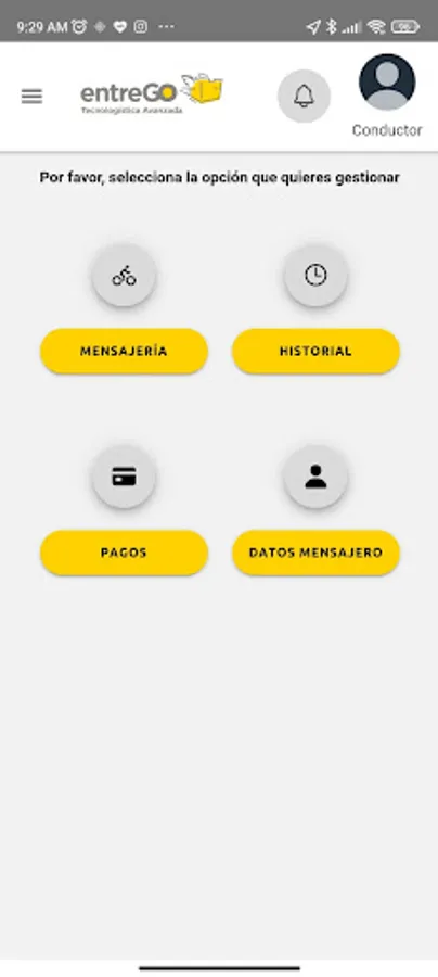 It allows the messenger to carry out messaging activities in real time and according to the request of registered customers to the EntreGO platform.