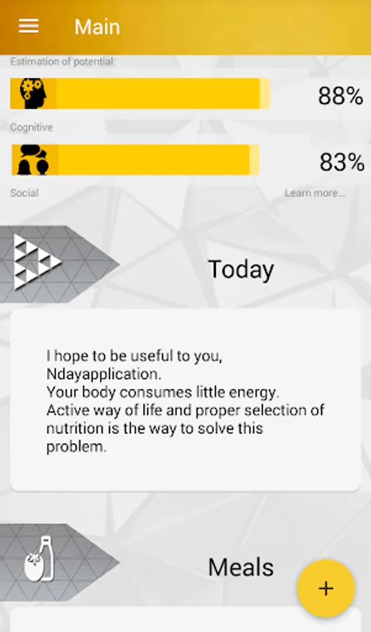 The application provides personal recommendations on nutrition, physical activity, and lifestyle to enhance personal effectiveness with care for health.