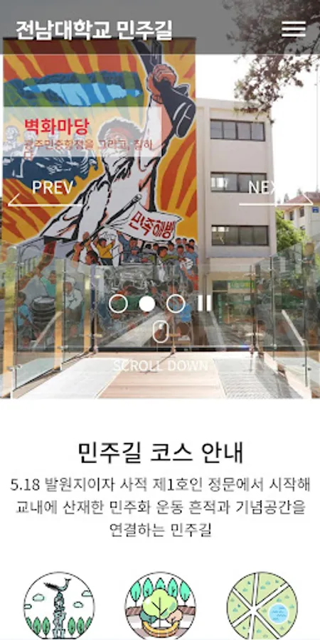 Chonnam National University arranged a memorial space for the spirit, people, and places of the democratization movement in the school, and created a “Democratic Road” in the concept of a cultural park such as Dulle-gil.