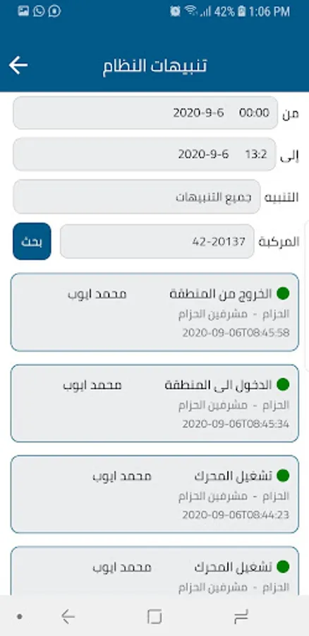 The app also has some of system reports, alarms, vehicles playback, connected devices and some other app functionalities.
