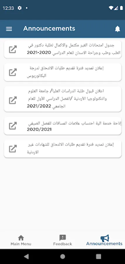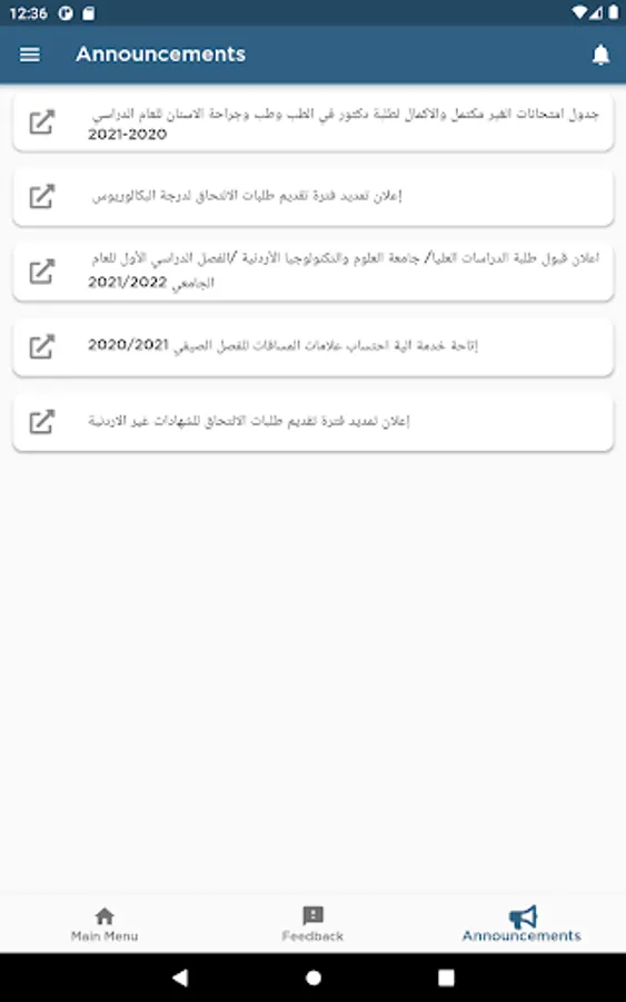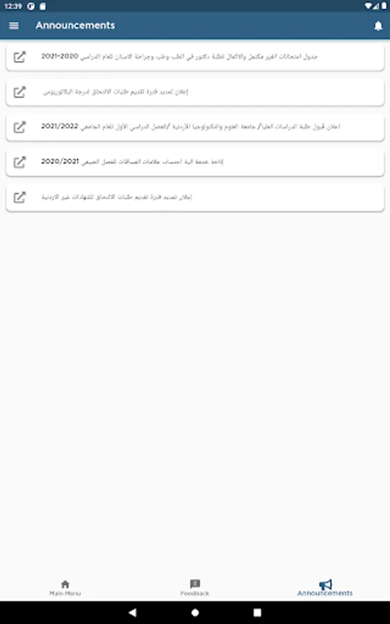 • Announcement Service: Shows the latest announcements published on JUST official website.