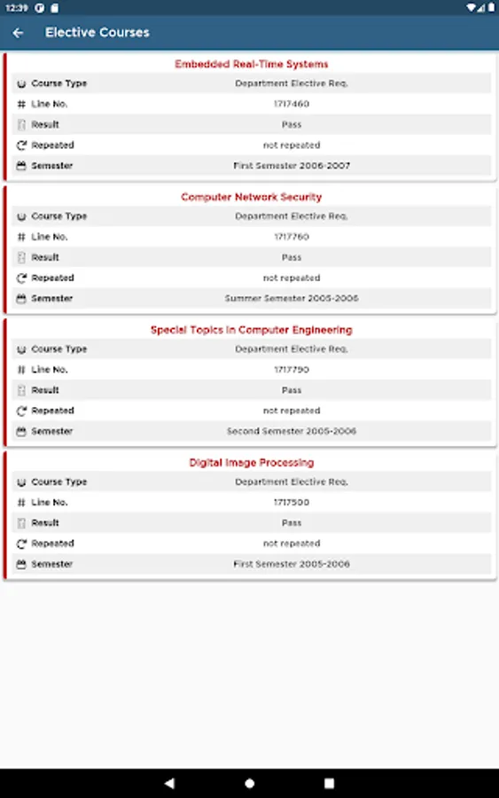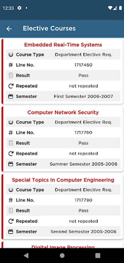 - Registered Courses for the current semester: This service shows a list of current registered courses, semester work marks, final courses’ result and absent count in each course.