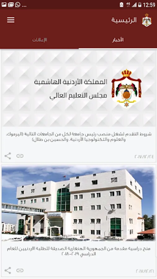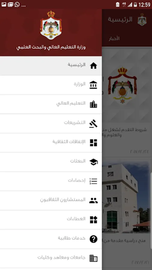 تطبيق وزارة التعليم العالي والبحث العلمي - النسخة التجريبية