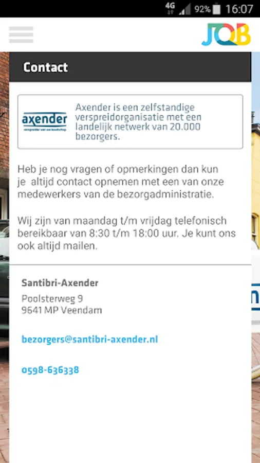Are you deliverer Axender? Then download the free app JOB (for deliverers) and always have quick and easy insight into your delivery area.