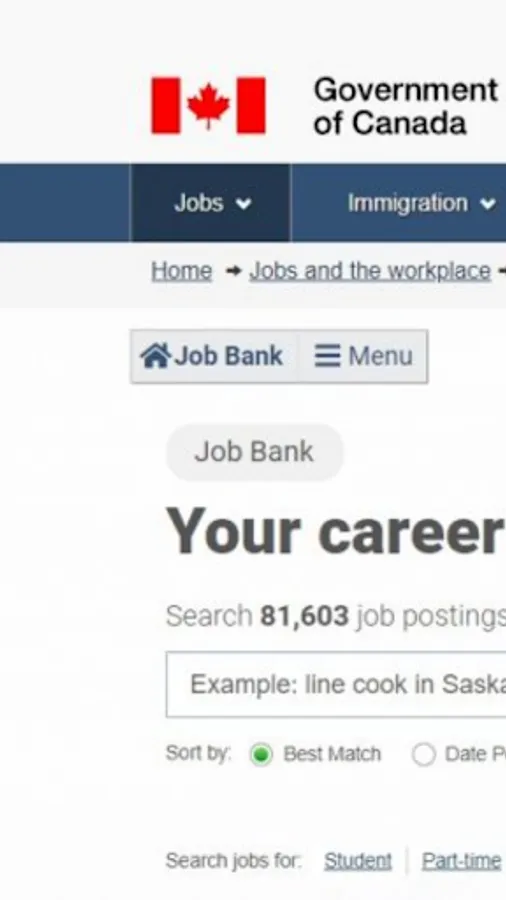 This is an application with direct links to Jobs Bank Canada so you can search for a job offer, or apply for a visa.