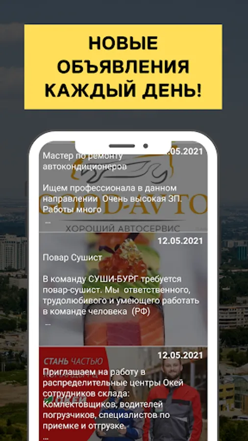 Work in Aktobe is a job search application for citizens of Kazakhstan, as well as citizens of the CIS and other countries. In an unstable situation on the labor market, we offer you the most popular and fresh professions, the list of vacancies of which is constantly updated: work as a driver, a guard on duty or a courier from direct employers.