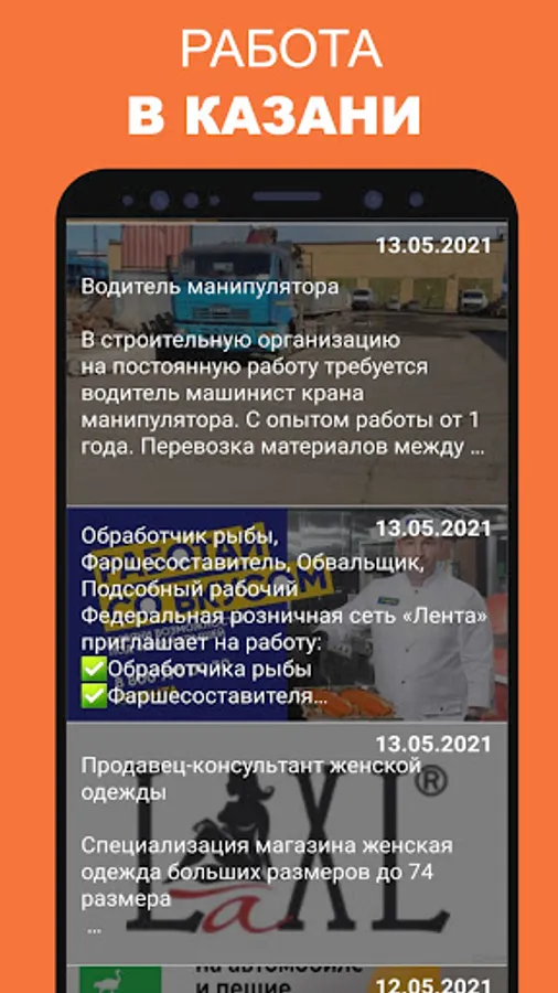 Job in Kazan is a special application for finding a job for citizens of Russia, as well as citizens of the CIS and other states. We offer you the most popular and freshest professions, the list of vacancies for which is constantly updated: work as a driver, a security guard on duty or as a courier from direct employers.
