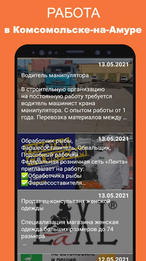 The ability to frequently add new job offers allows you to find the most optimal employment option. Our application will help you find a job or a part-time job in Komsomolsk-on-Amur with the necessary working conditions and decent wages in just a few clicks.