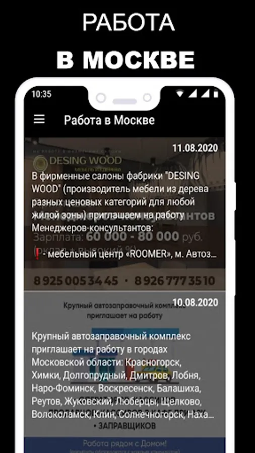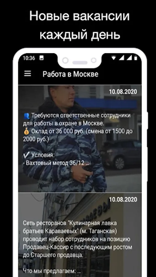 Work in Moscow is an application for finding work in the capital for citizens of Russia, as well as citizens of the CIS and other countries. In an unstable situation on the labor market, we offer you the most popular and freshest professions, the list of which is constantly updated: working as a driver, watch guard or courier from direct employers.
