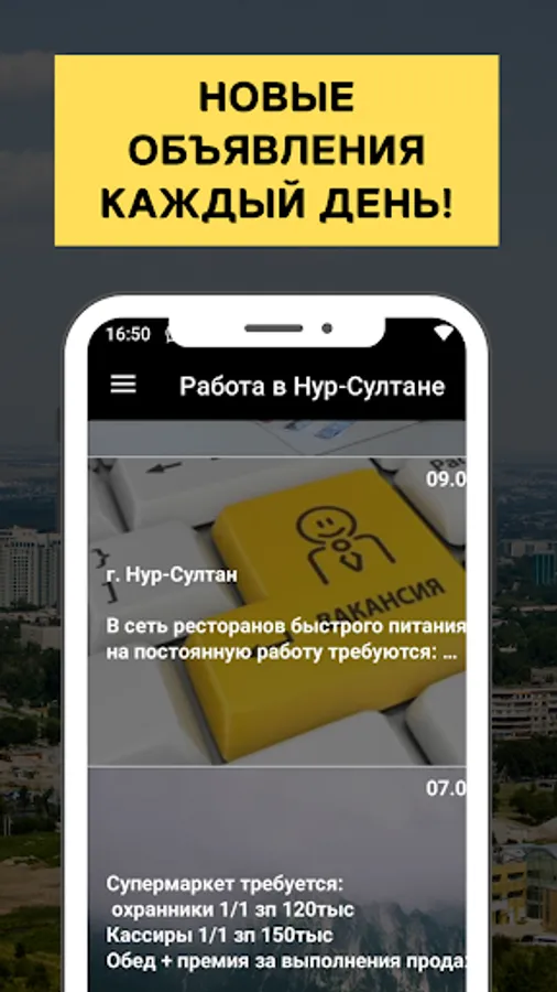 The ability to frequently add new job offers allows you to find the best option for employment. Our application will help you find a job or part-time job in Astana, the capital of Kazakhstan, with the right working conditions and decent pay in just a few clicks.