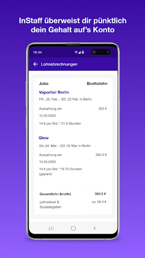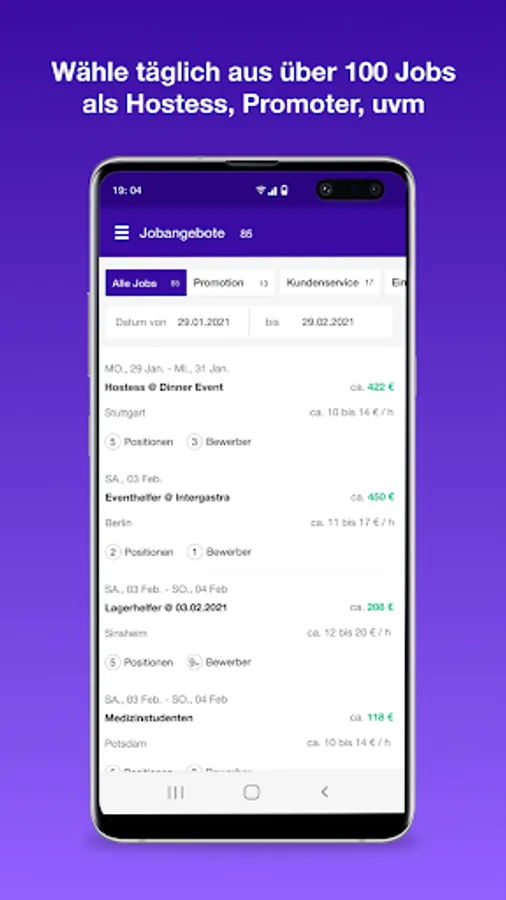 Einmal angemeldet erhältst du täglich neue Jobangebote auf dein Smartphone. Du kannst dich mobil auf die Jobs bewerben und bist dann in der Auswahl des Kunden. Nach kurzer Zeit erhältst du die Rückmeldung, ob du vom Kunden für den Job gebucht wurdest. Im Falle der Buchung wirst du über InStaff als Kurzfristig Beschäftigter Arbeitnehmer angestellt (so benötigst du Keinen Gewerbeschein) und InStaff zahlt dir nach dem Job das Gehalt aus.