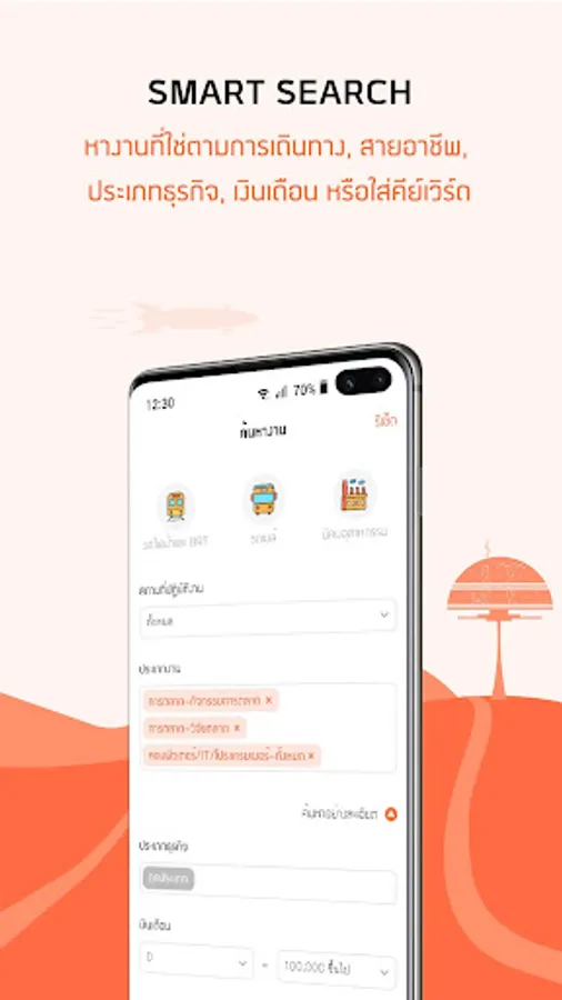 Easy to search jobs by job categories, industries, locations, industrial estates, salaries, commuting options (BTS, MRT, BRT, Airport link , Bus Routes) or specific keywords.