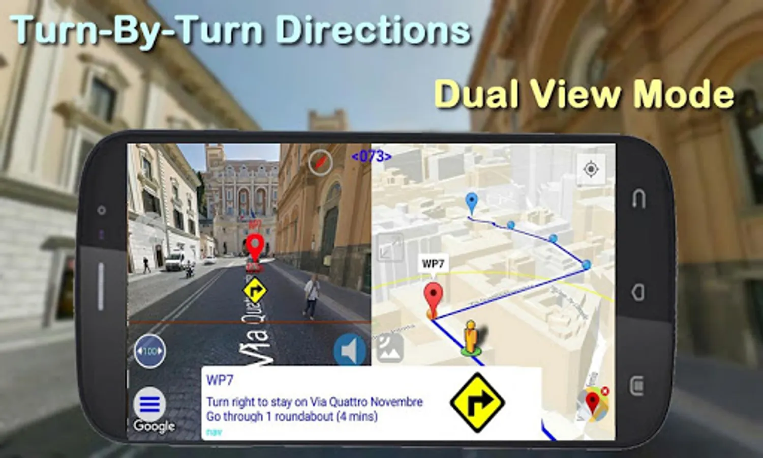 Use the augmented navigation either for your real location, or for your virtual location during your virtual tour with Street View. This way you can explore the path to reach your destination virtually before actually hitting the road.